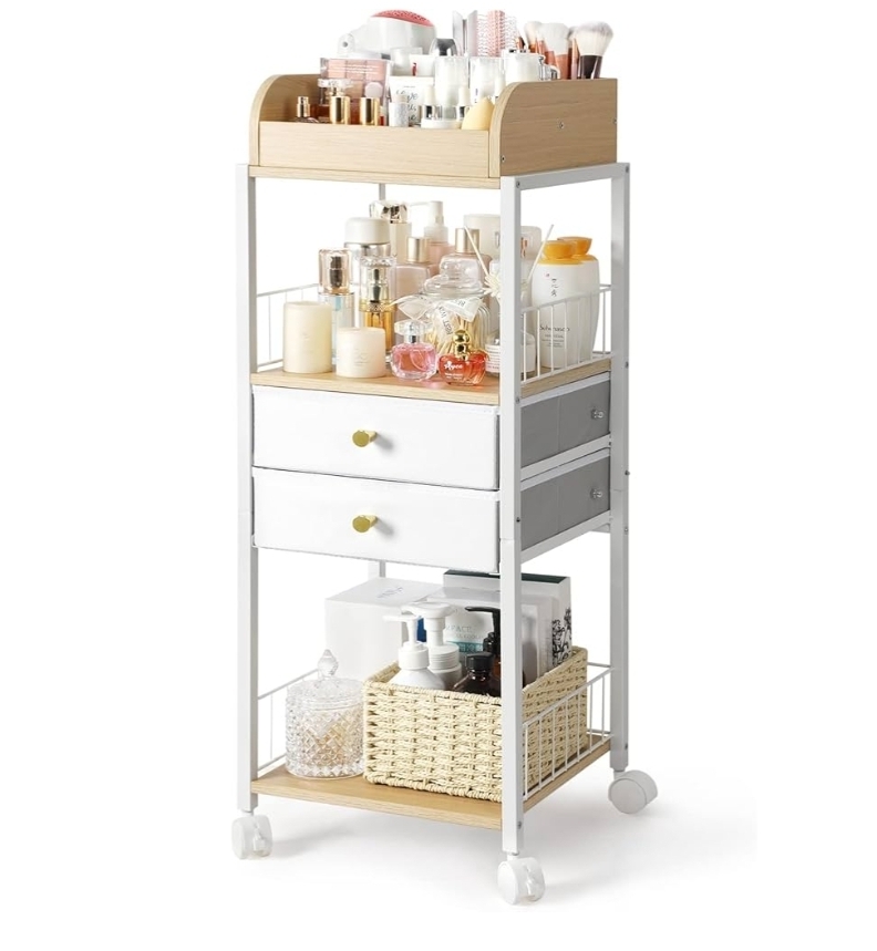 Ending On: 01/03/2026 07:27 Preview Time: 12:49 PMFloor Makeup Organizer Storage Cart - Rolling Makeup Cart with Drawers, Skincare Make Up Organizers and Storage, Cosmetics Display Cases Holder for Skin Care Nail Polish Perfume Makeup Brush (White)