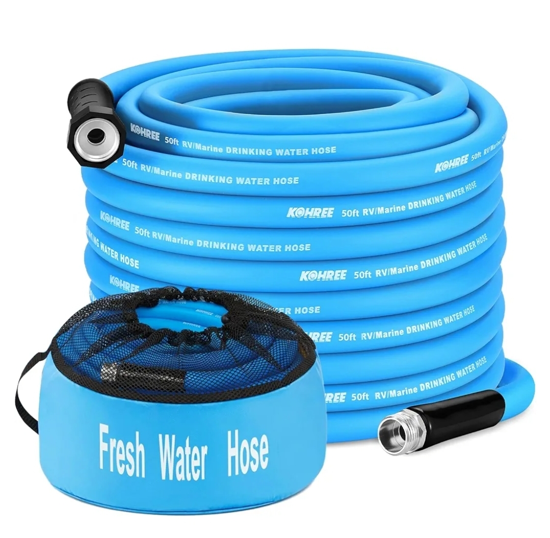 Ending On: 01/03/2026 07:28 Preview Time: 01:15 PMKohree 50FT RV Water Hose with Storage Bag, 5/8'' Drinking Water Hose, No Odor, Leak Free, Heavy Duty, No Kink and Flexible Garden Hose 50 ft, Ideal RV Accessories for RV, Camper, Garden - Blue