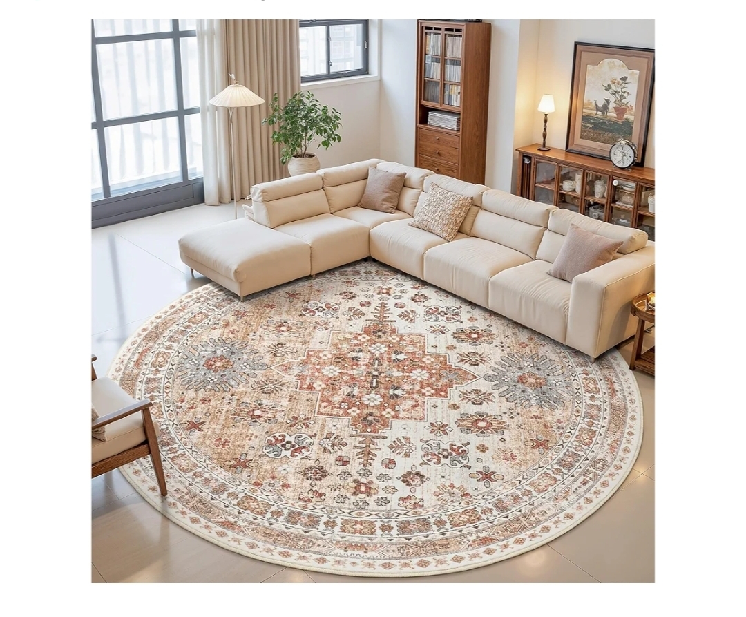 Ending On: 01/03/2026 07:38 Preview Time: 01:54 PMzesthome 9ft Round Rugs for Living Room, Non-Slip Washable Round Area Rugs, Ultra-Thin Large Circle Rugs, Soft Low Pile Rug for Bedroom, Kitchen - Vintage Stain Resistant Round Rug (Orange,9'x9')