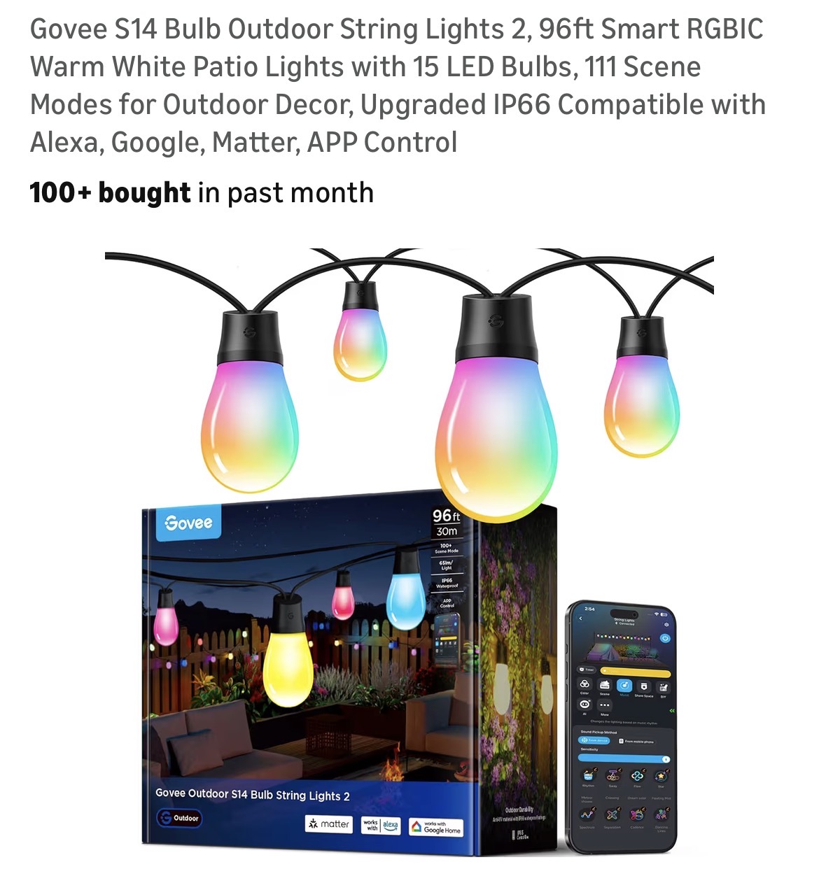 Govee S14 Bulb Outdoor String Lights 2, 96ft #D23