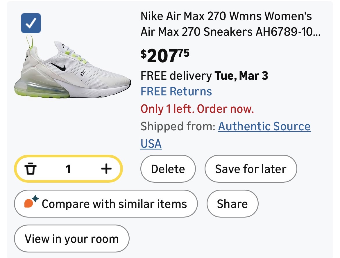 Nike Women's Air Max 270 Sneaker (Size #10) #D31