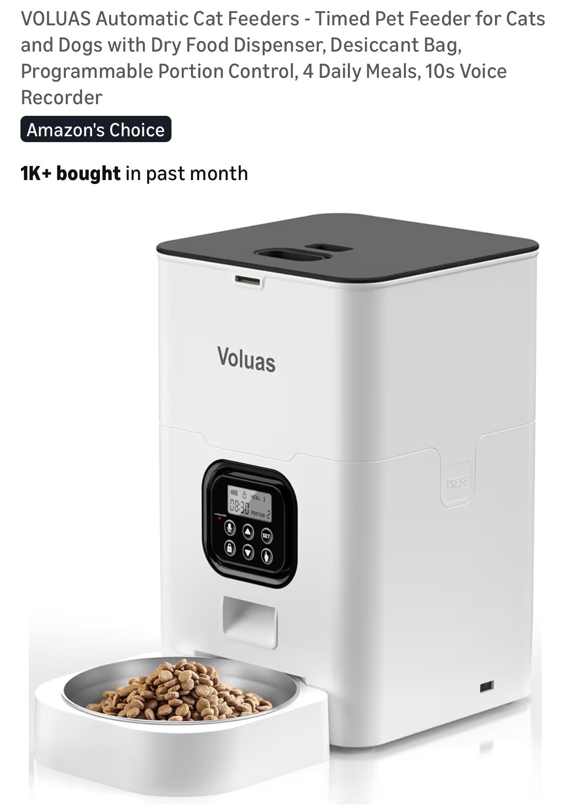 VOLUAS Automatic Cat Feeders - Timed Pet Feeder for Cats and Dogs with Dry Food #I35