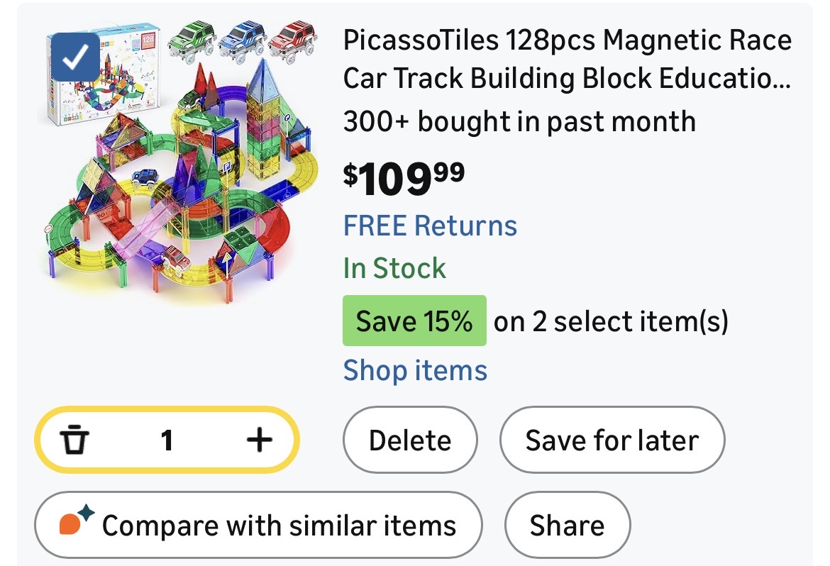 PicassoTiles 128pcs Magnetic Race Car #I36