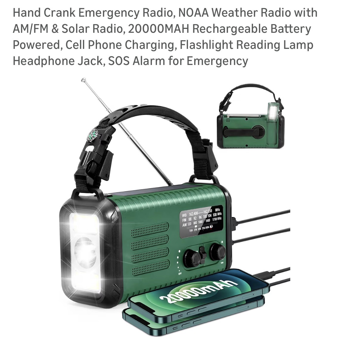 Hand Crank Emergency Radio, NOAA Weather Radio with AM/FM & Solar Radio, 20000MAH Rechargeable Battery Powered #I43
