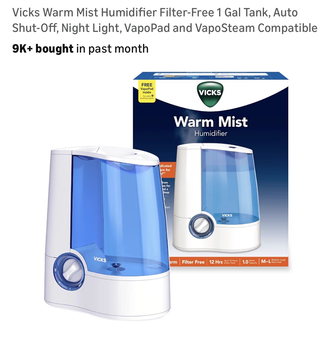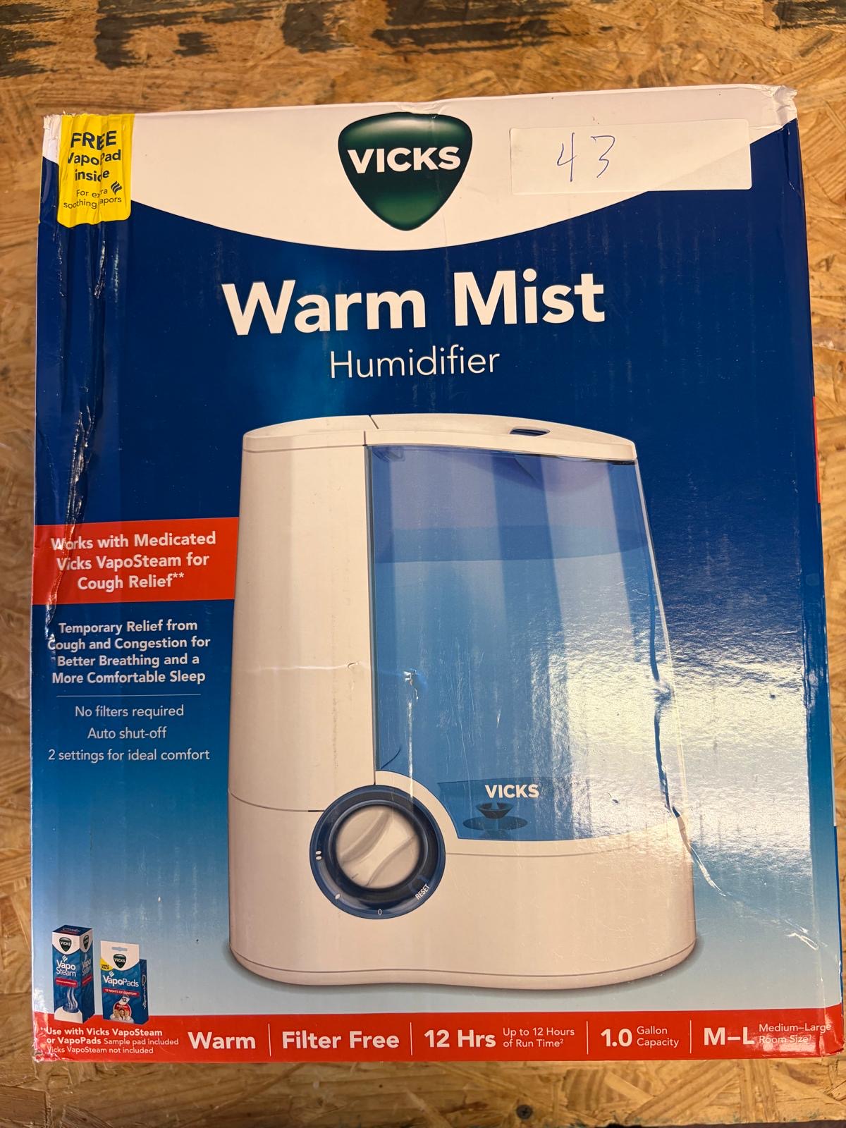 Vicks Warm Mist Humidifier Filter‑Free 1 Gal Tank #D43
