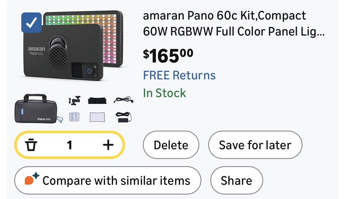 amaran Pano 60c Kit,Compact 60W RGBWW Full Color Panel Light #D49