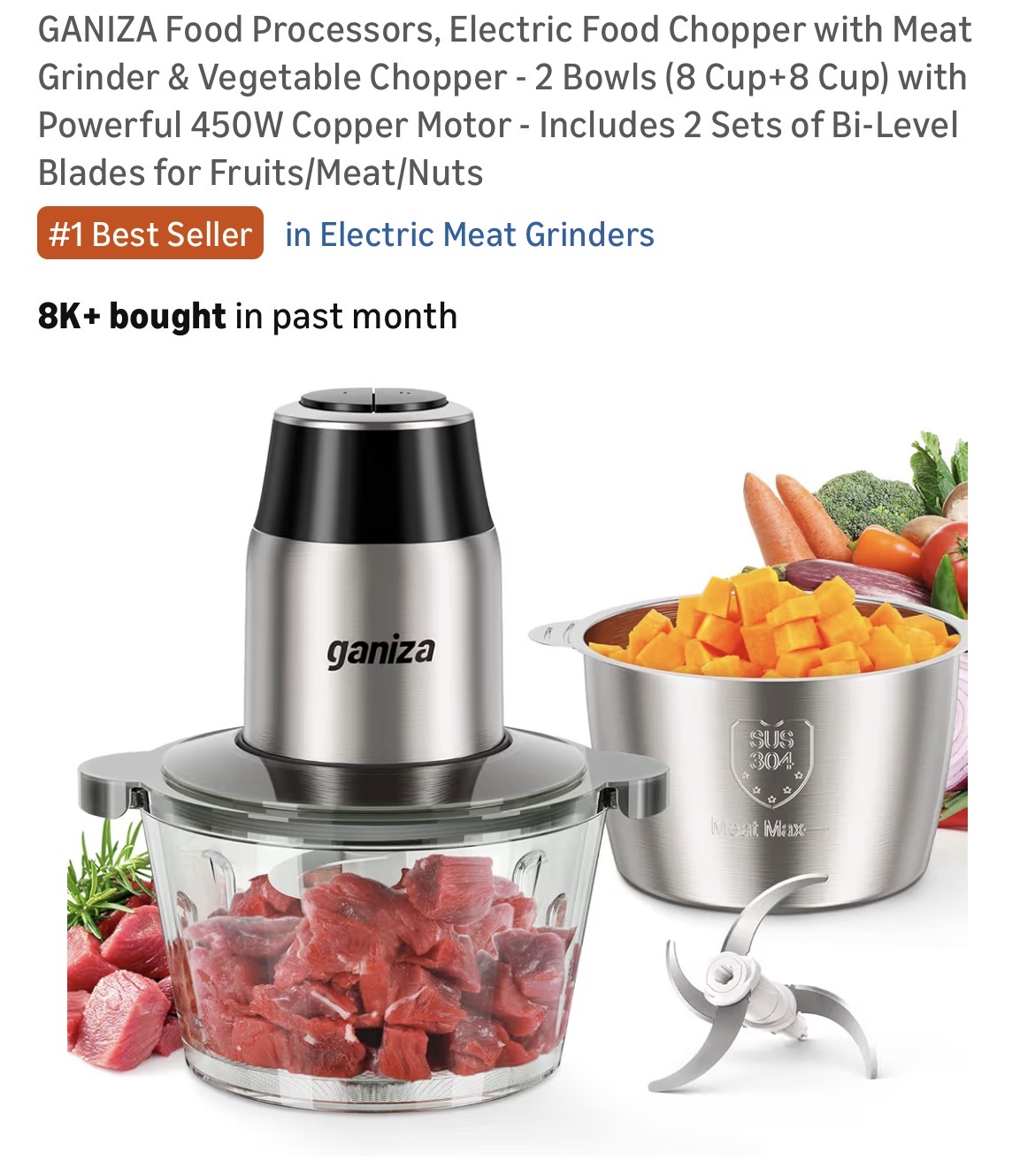 GANIZA Food Processors, Electric Food Chopper with Meat Grinder & Vegetable Chopper #D86