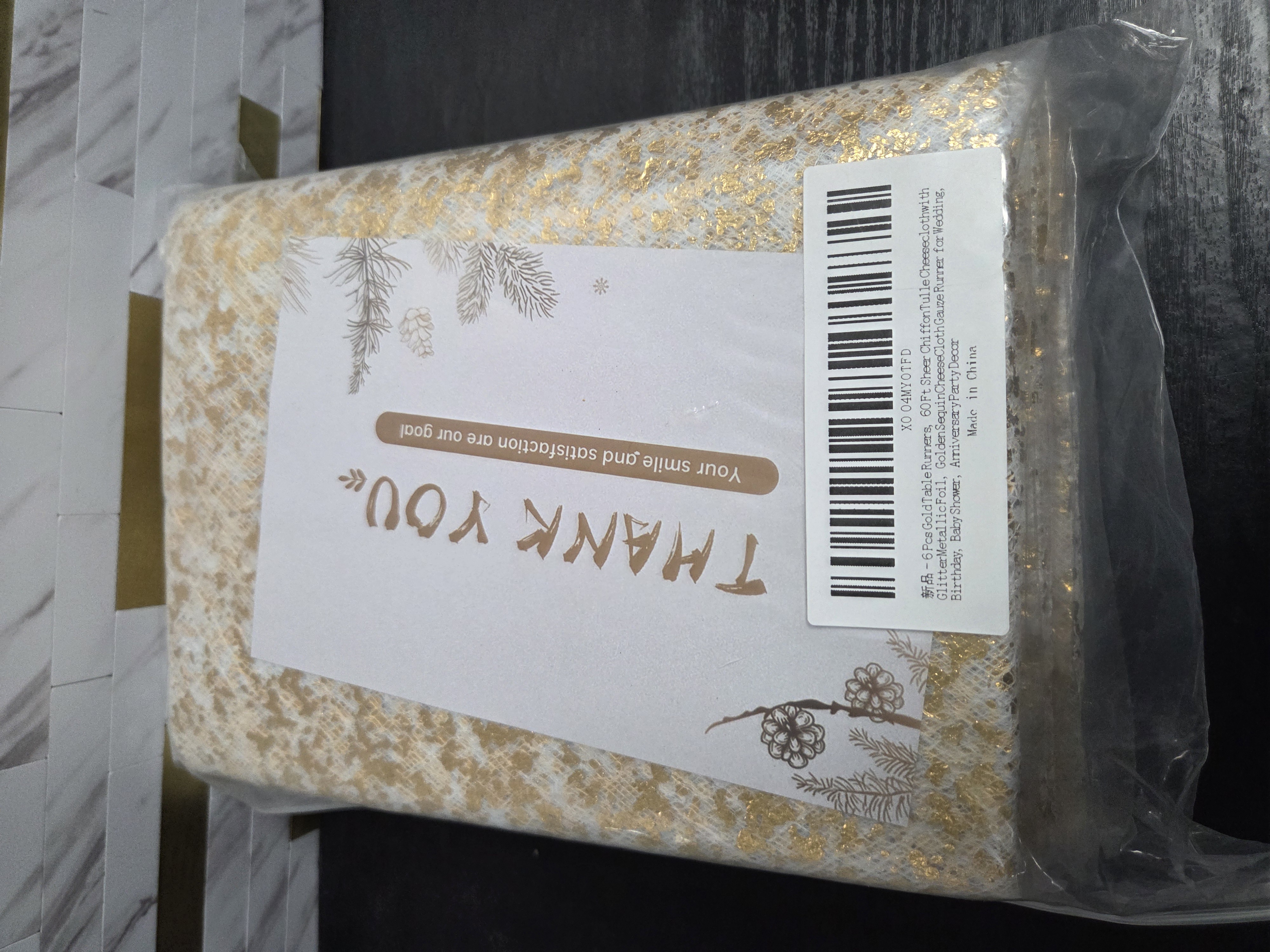 Ending On: 01/03/2026 07:35 Preview Time: 05:01 PM6 Packs Gold Table Runners 10 Ft, Sheer Cheese Cloth Tulle Birthday Decorations, Gold Foil Sequin Table Decoration Centerpiece for Party Birthday Wedding Anniversary Christmas