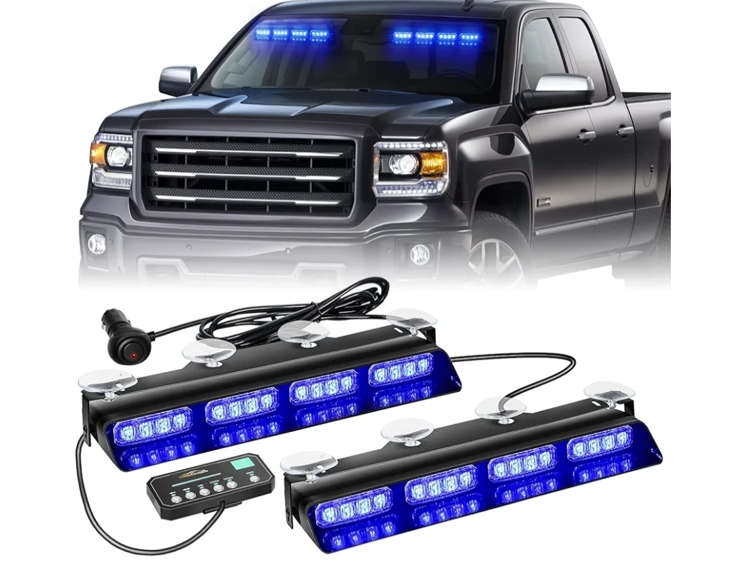 Ending On: 01/03/2026 07:36 Preview Time: 05:10 PMEmergency Dash Strobe Lights Safety Flashing Warning Hazard Interior Front/Rear Windshield Deck Split Light Bar w/Suction Cups for Police Ambulance Vehicles Trucks( 2x14 inch, Blue )