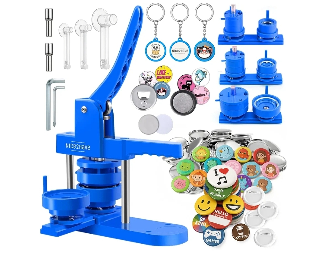 Ending On: 01/03/2026 07:40 Preview Time: 06:26 PMMachine Kit w/ 500 Buttons, 15 Fridge Magnets, 15 Bottle Openers, 15 Keychain Buttons, Cutters & 500+ Button Designs for DIY Crafts