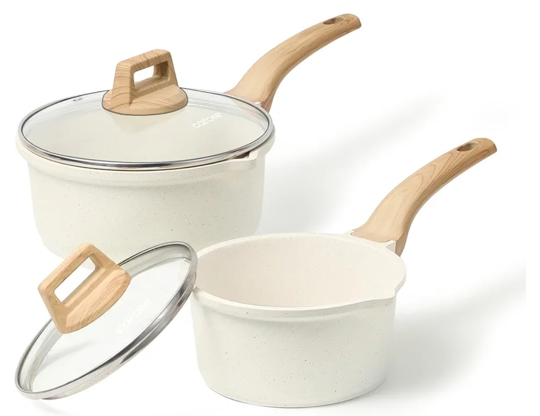 Ending On: 01/03/2026 07:41 Preview Time: 06:58 PMCAROTE 1.5Qt & 3.0Qt Sauce Pan Sets with Lid Cooking Pots Nonstick Saucepans Cookware Set with Pour Spout Small Kitchen Pot, Induction Comptable, Easy to Clean, PFOA FREE (White Granite)