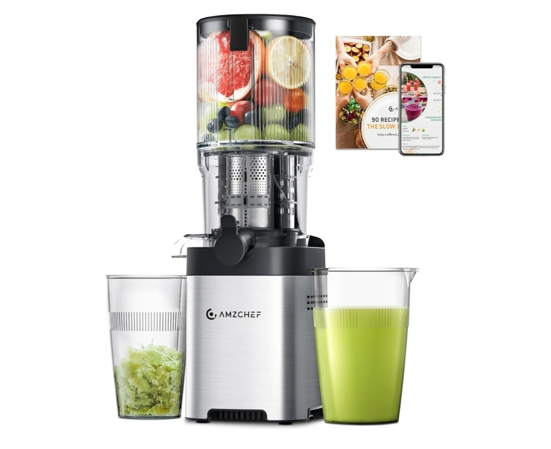 Ending On: 01/03/2026 07:42 Preview Time: 07:06 PMAMZCHEF Cold Press Juicer, Juicers Machines - 5.2" Masticating Juicer for Whole Fruits & Vegetables, Stainless Steel Easy to Clean, Large Auger, Triple Strainers, Silver