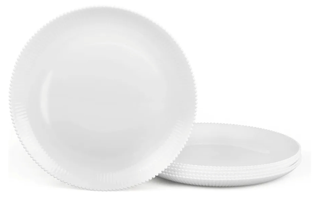Ending On: 01/03/2026 07:43 Preview Time: 07:49 PM10.5 inch Ribbed Dinner Plate Set of 6, Round Opal Glass White Dinnerware Plates, Dishwasher and Microwave Safe