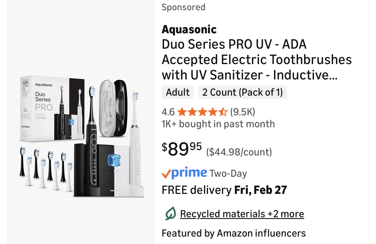 Aquasonic duo pro toothbrush set with UV sterilizer 94
