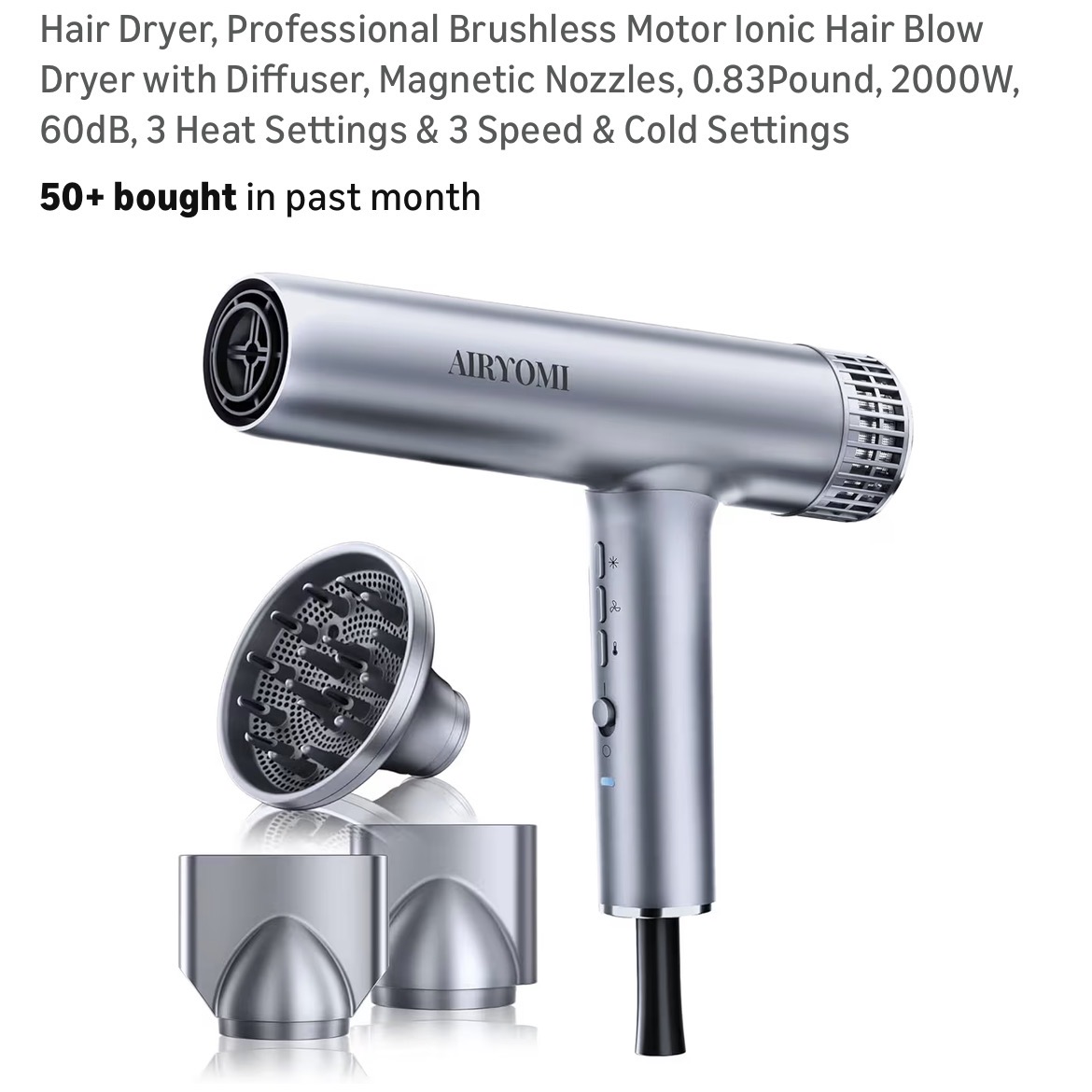 Hair Dryer, Professional Brushless Motor Ionic Hair Blow Dryer with Diffuser #D147