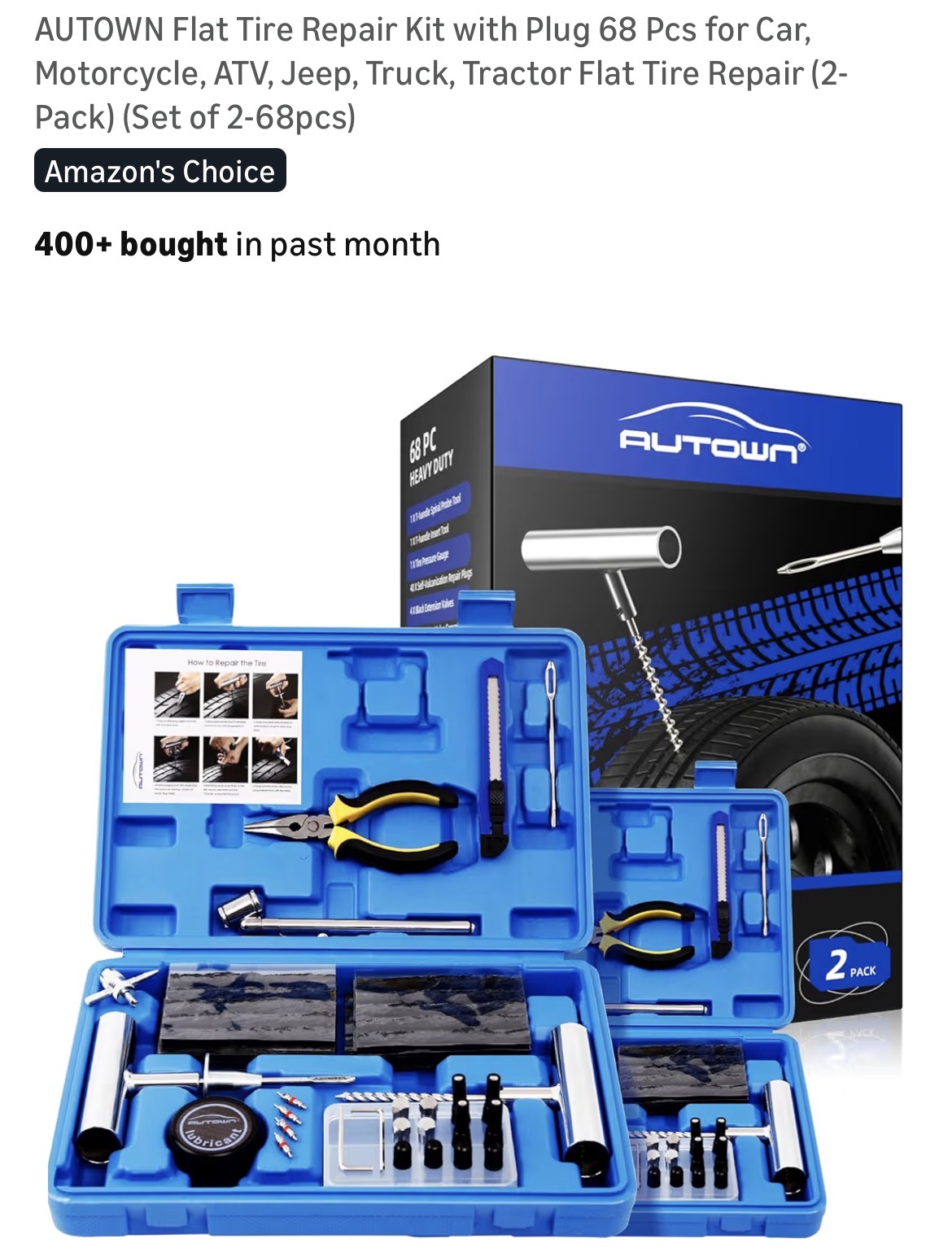 AUTOWN Flat Tire Repair Kit with Plug 68 Pcs for Car, Motorcycle #J21