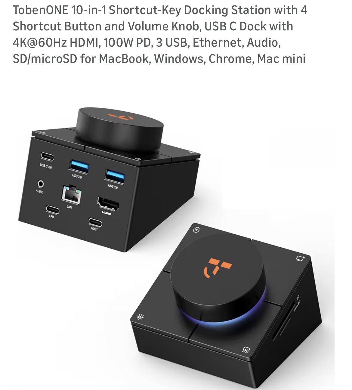 TobenONE 10-in-1 Shortcut-Key Docking Station with 4 Shortcut Button and Volume Knob #J34