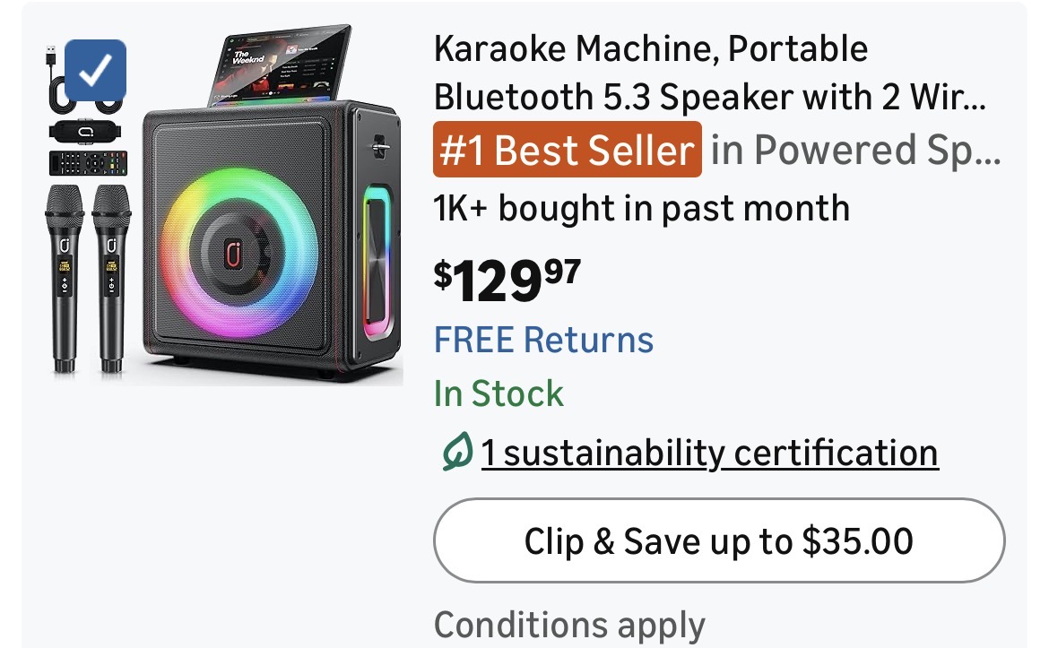 Karaoke Machine, Portable Bluetooth 5.3 Speaker with 2 Wireless Microphones #J43