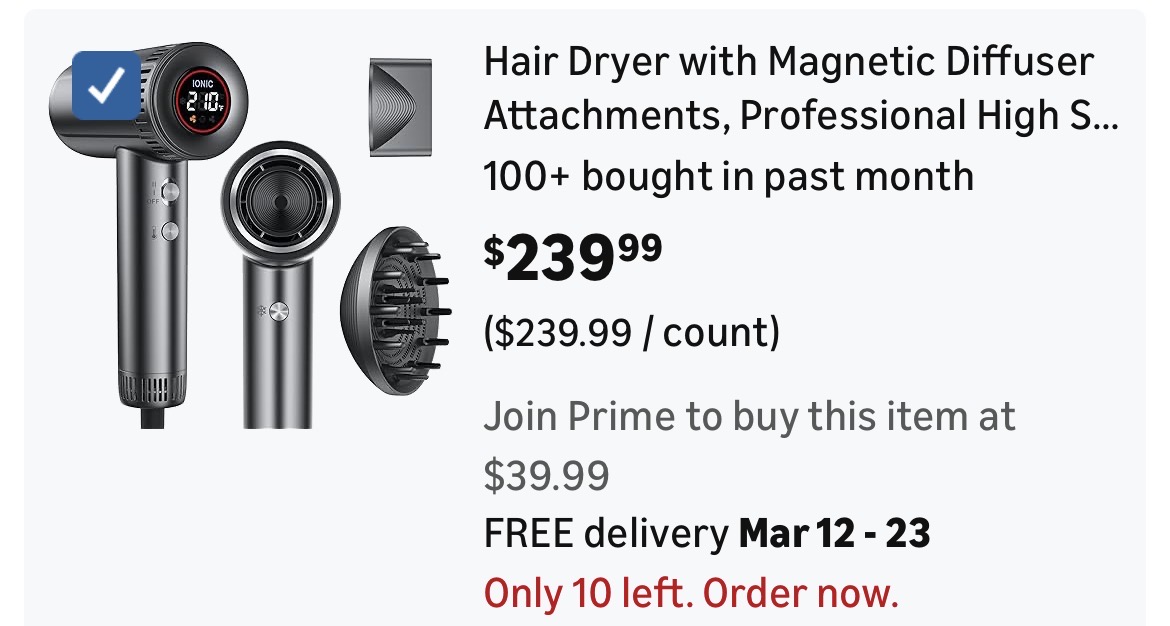 Hair Dryer with Magnetic Diffuser Attachments, Professional High Speed Ionic Blow Dryer for Fast Drying #J79