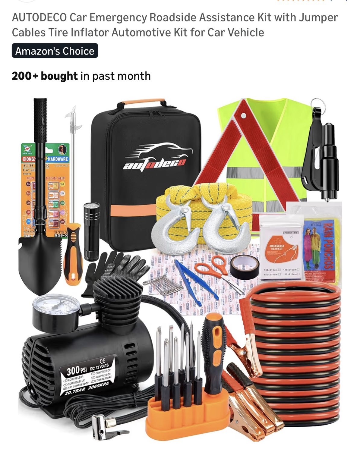 AUTODECO Car Emergency Roadside Assistance Kit with Jumper Cables Tire Inflator Automotive Kit for Car Vehicle #E22
