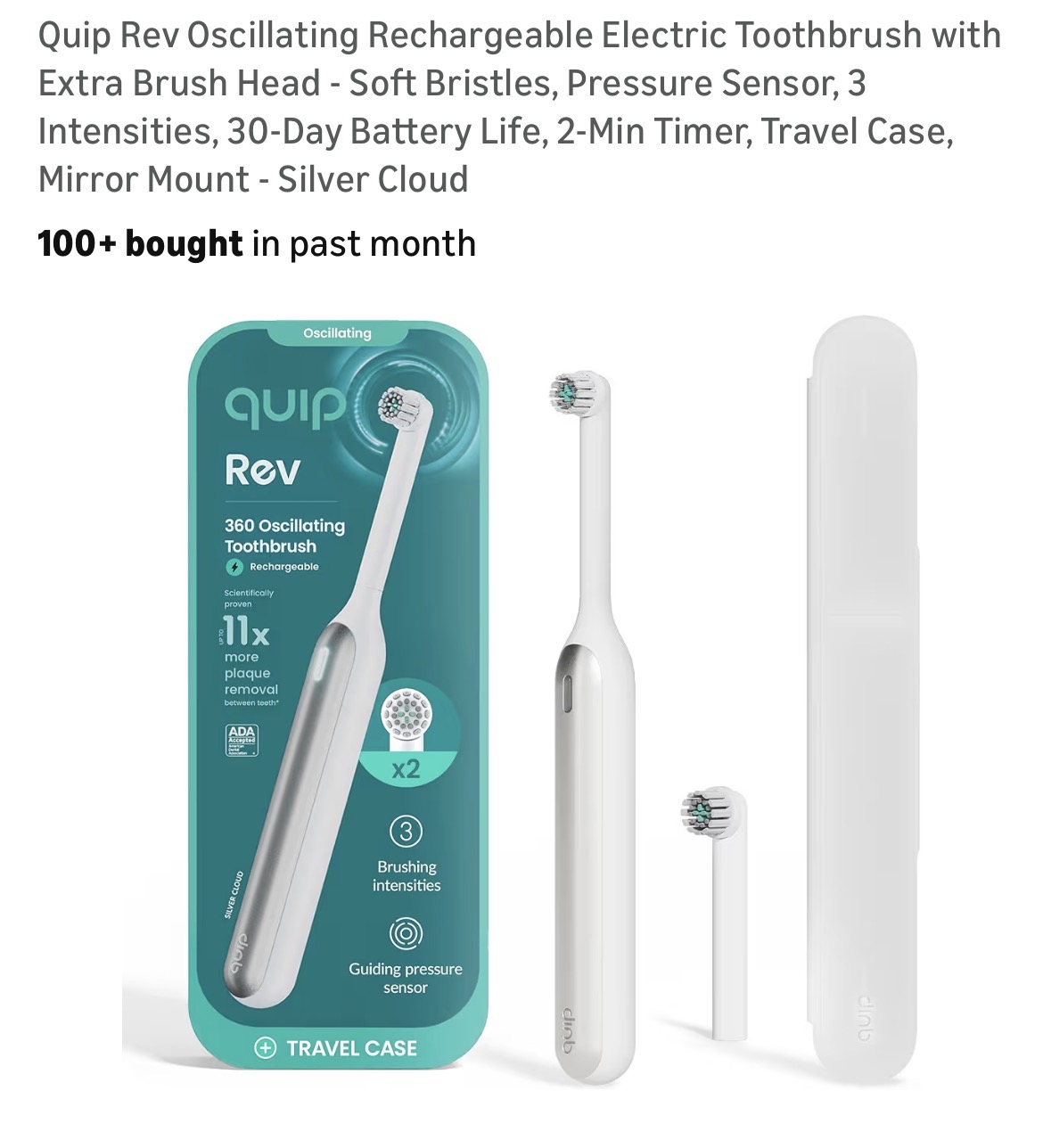 Quip Rev Oscillating Rechargeable Electric Toothbrush with Extra Brush Head #D25