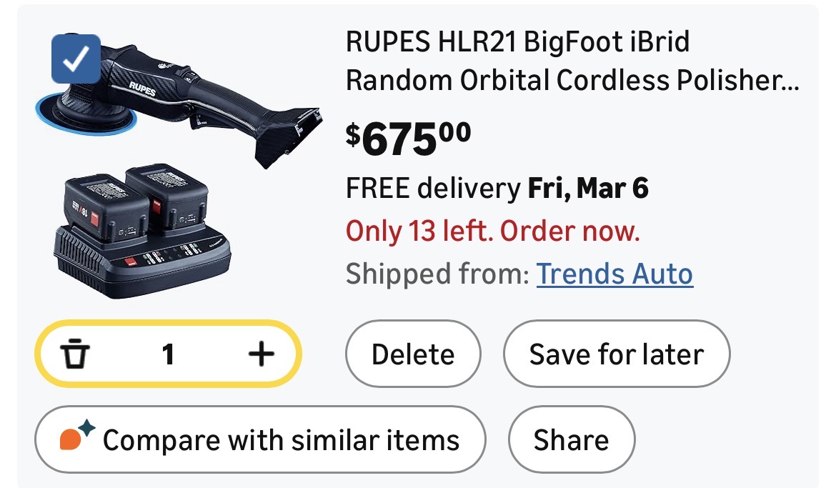RUPES HLR21 BigFoot iBrid Random Orbital Cordless Polisher Tool #D110