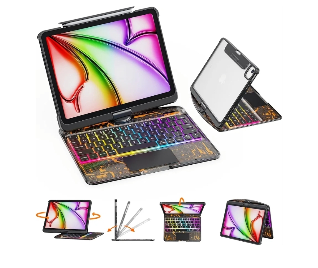 Ending On: 08/03/2026 07:16 Preview Time: 07:07 PMGUSGU Transparent Case with Wireless Keyboard for iPad 10.2-in (7th, 8th, and 9th Gen), 7 Colors Backlight, Trackpad, 360°Rotating Stand, Tech Style