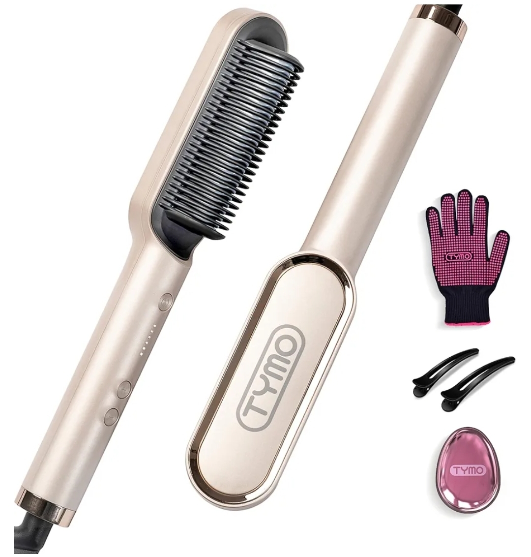 Ending On: 08/03/2026 07:18 Preview Time: 01:42 AMHair Straightener Brush, TYMO Ring Hair Straightener Comb Straightening Brush for Women with 5 Temps 20s Fast Heating & Dual Voltage, Gold