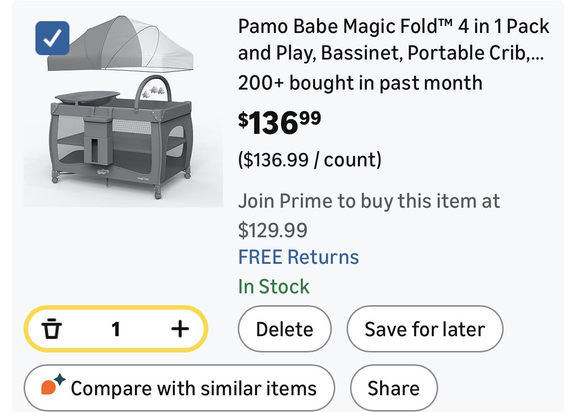 Pamo Babe Magic Fold™ 4 in 1 Pack and Play, Bassinet #E26