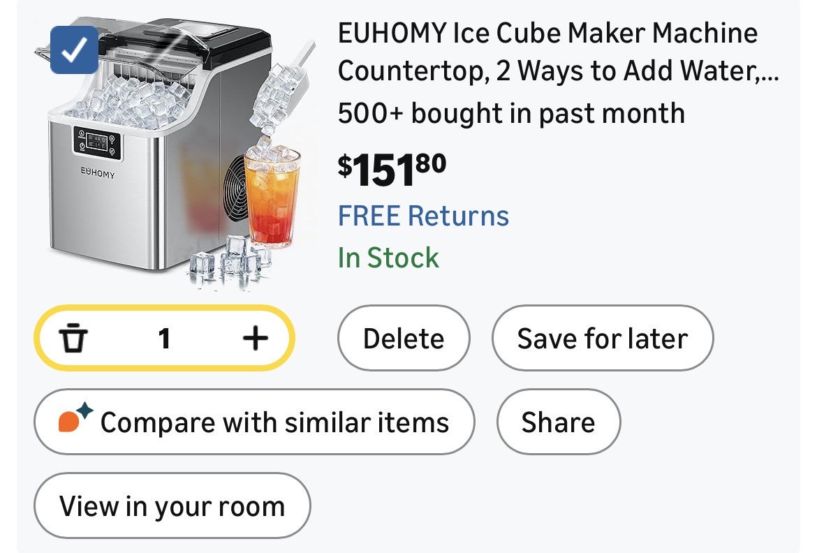EUHOMY Ice Cube Maker Machine Countertop, 2 Ways to Add Water #E46