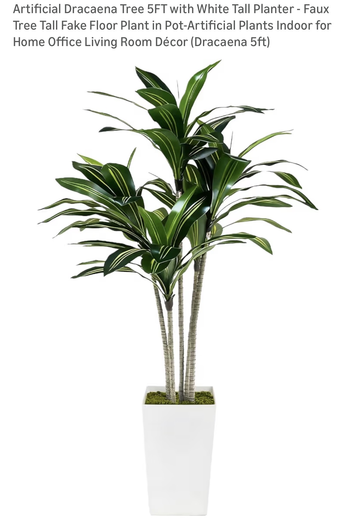 Artificial Dracaena Tree 5FT with White Tall Planter #E54