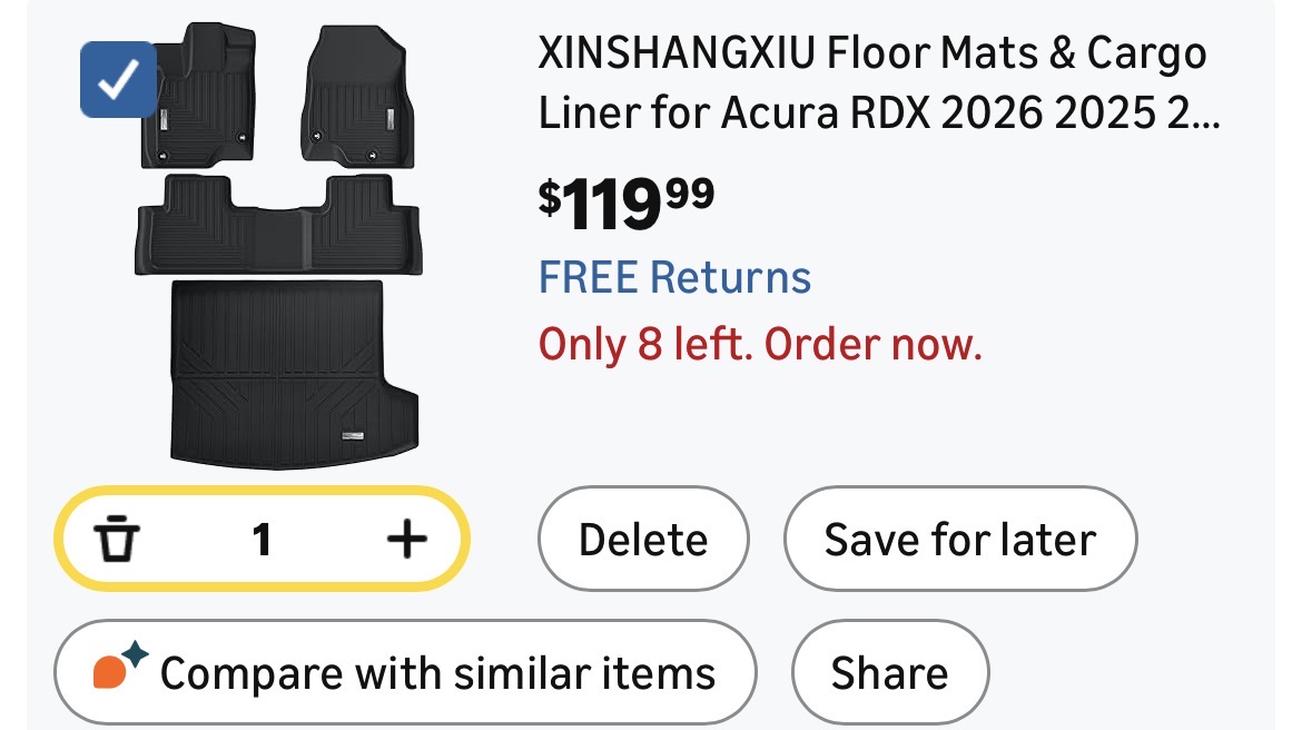 Floor Mats & Cargo Liner for Acura RDX 2026 2025 2024 2023 2022 2021 2020 2019 #E55