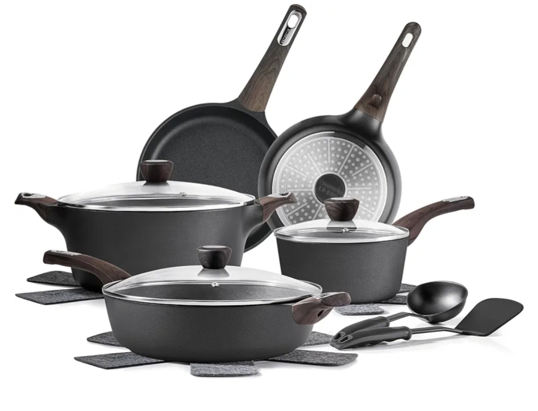 Ending On: 08/03/2026 07:23 Preview Time: 05:34 PMSENSARTE Pots and Pans Set Non stick, Non toxic Healthy Induction Cookware Sets, 14 Pcs Non Stick Kitchen Cooking Set with Frying Pans Set & Saucepan, PFOA PFOS Free, Black