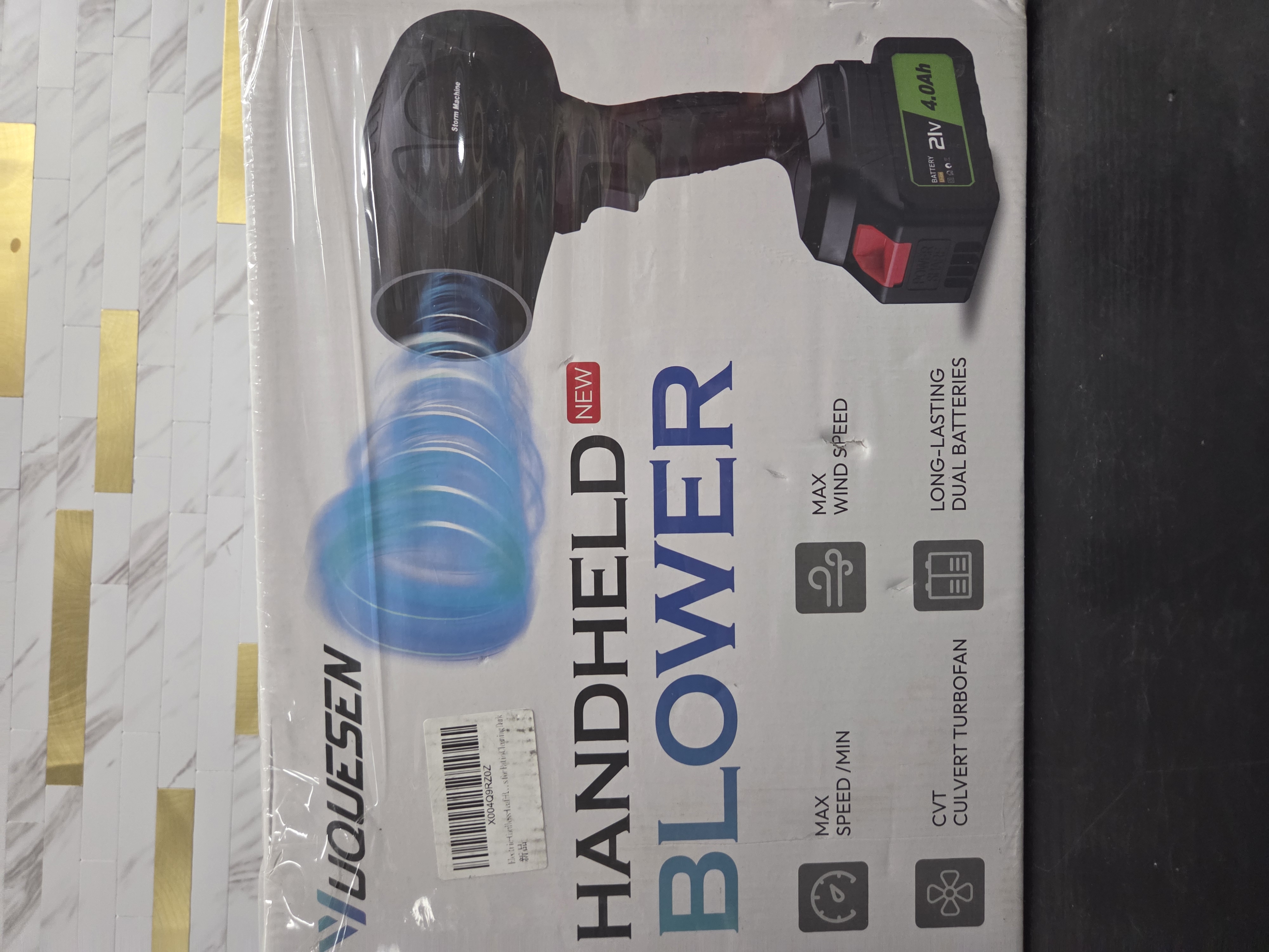 Ending On: 08/03/2026 07:20 Preview Time: 05:45 PM980,000 RPM Cordless Leaf Blower - 21V Electric Handheld Leaf Blower with 2×4.0Ah Batteries & Fast Charger - Lightweight for Patio, Lawn, Yard, Deck Cleaning - Light Black