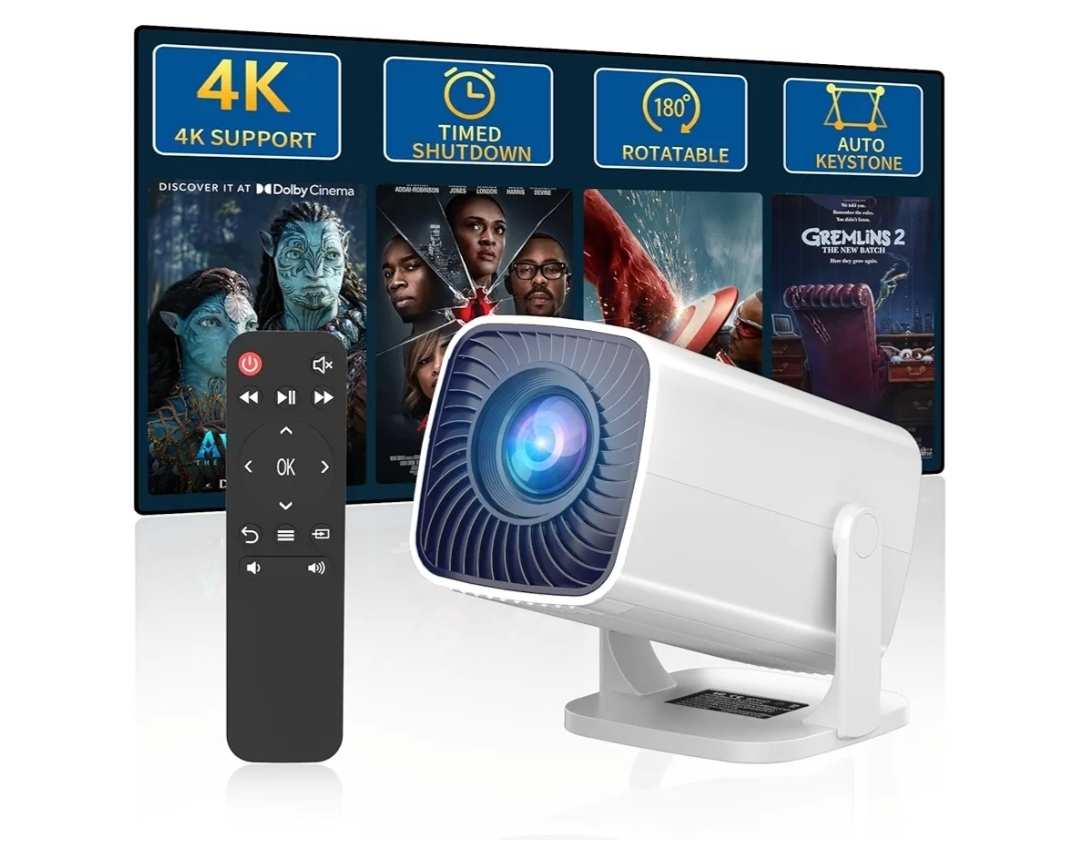 Ending On: 08/03/2026 07:25 Preview Time: 10:25 PMMini Projector, Portable Outdoor Projector 4K Supported, Short Throw Movie Projector Compatible with Smartphone, TV Stick, Laptop, Game Consoles