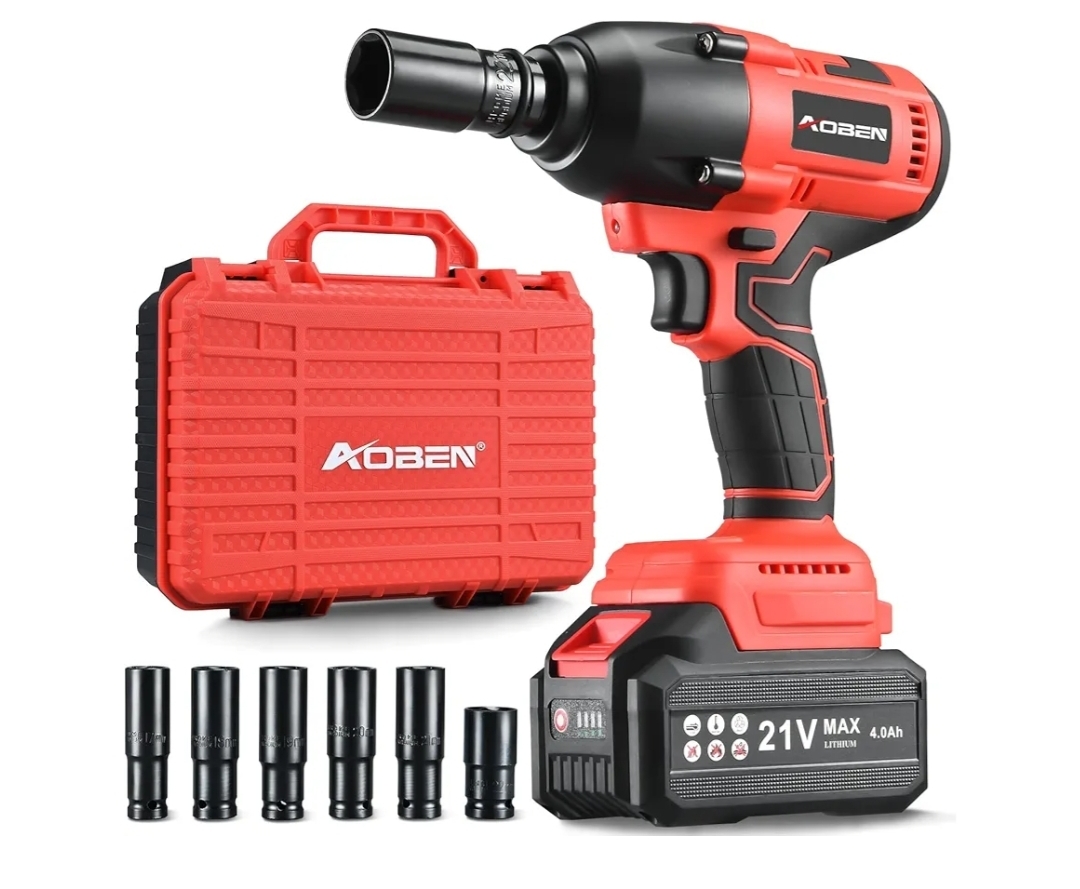 Ending On: 08/03/2026 07:26 Preview Time: 11:33 PMAOBEN Cordless Impact Wrench 1/2 Inch, Power Impact Gun Kit, Max 600N. M/450Ft-lbs High Torque Electric Impact Driver for Car RV Tire, 4.0Ah Battery, Charger, 6 Sockets & Storage Tool Case