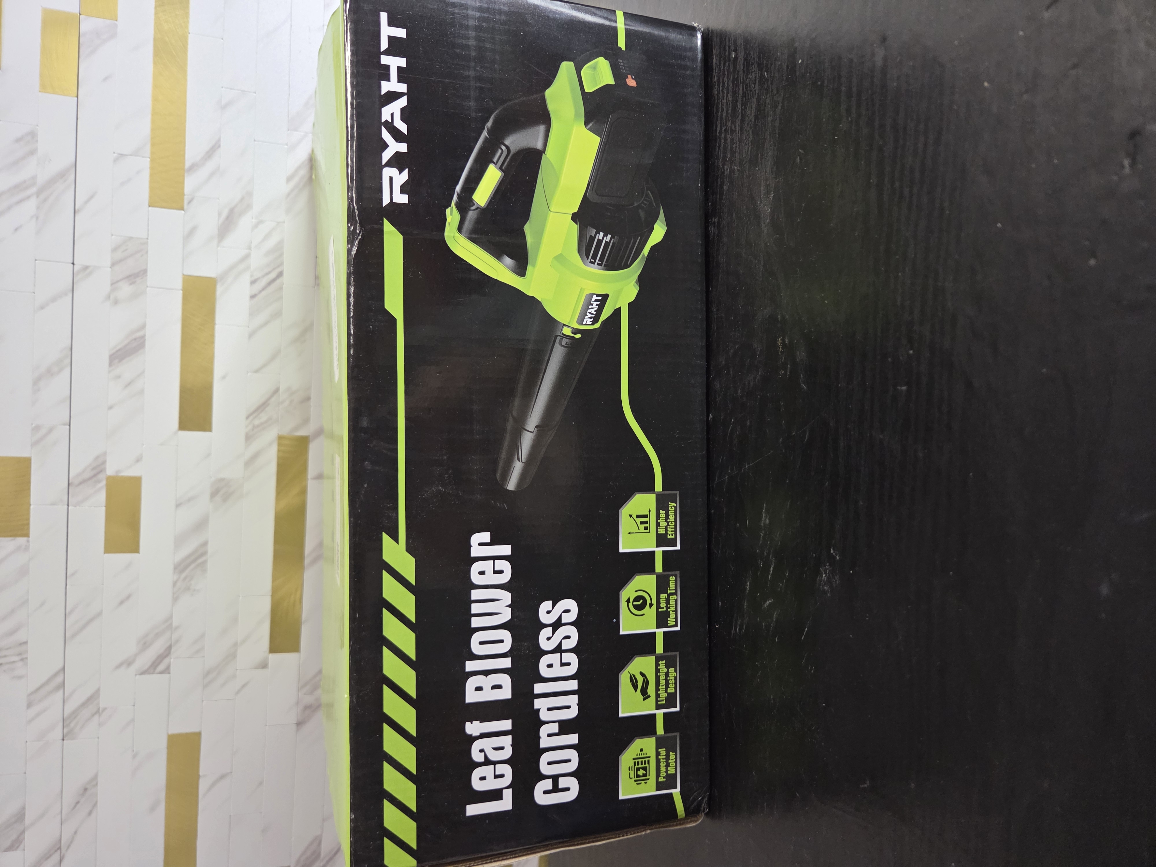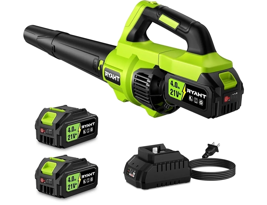Ending On: 08/03/2026 07:27 Preview Time: 11:36 PMRYAHT Leaf Blower Cordless, 21V Powerful Electric Leaf Blower with 2 X 4.0Ah Batteries and Charger, 2 Speed Modes, Handheld Lightweight Leaf Blowers for Lawn Care, Patio, Dust, Blowing Leaves, Green