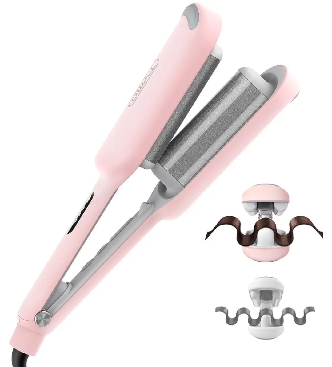 Ending On: 08/03/2026 07:28 Preview Time: 11:46 PMCurling Iron Hair Crimper Waver - TYMO ROVY Beach Waves Curling Wand, Ionic Deep Waver Hair Curler Tool with Ceramic 3 Barrel for Women, Dual Voltage, Anti-Scald, Easy to Use, Pink, 1.25 Inch