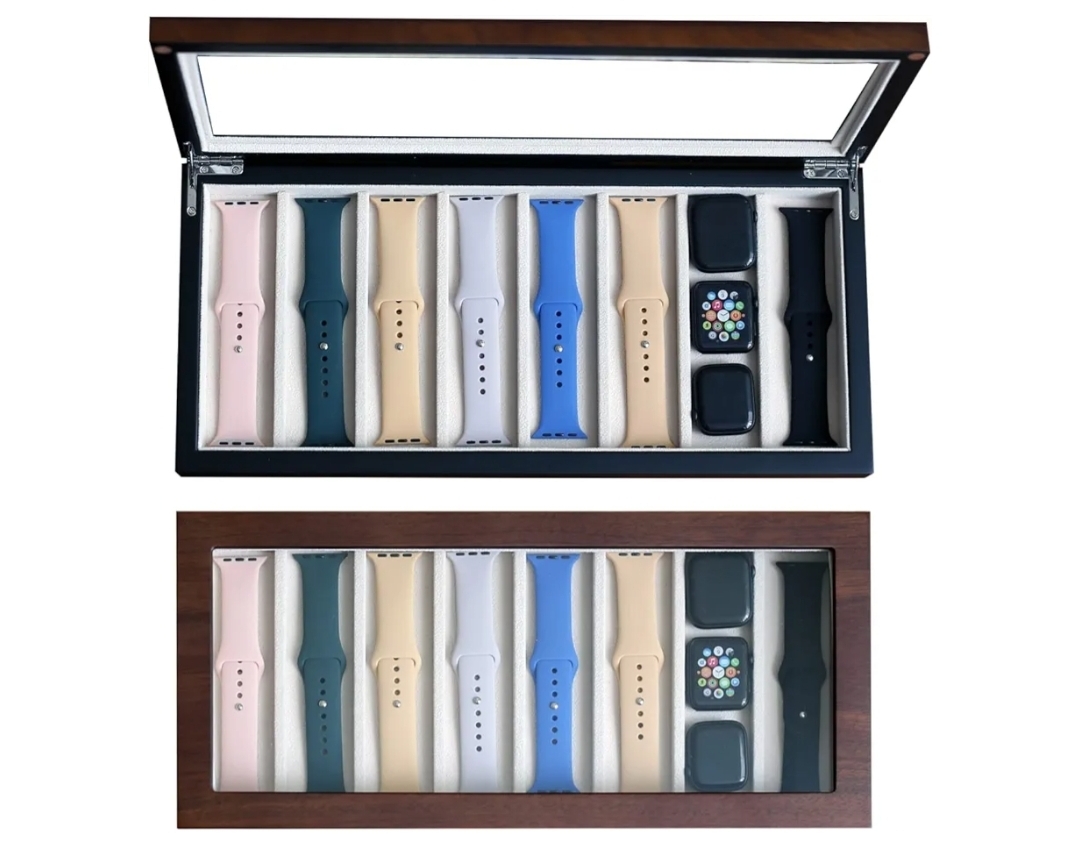 Ending On: 08/03/2026 07:28 Preview Time: 12:13 AMWatch Band Organizer Case for Men or Women Holder Watch Band, Wooden Watch Band Storage Box with Real Glass Window (Walnut veneer 8 slot)