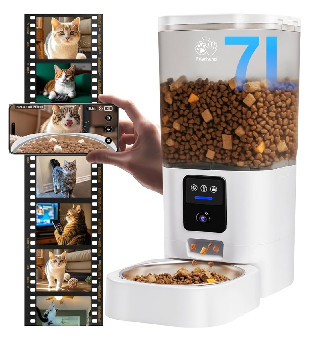Ending On: 08/03/2026 07:31 Preview Time: 03:39 PMAutomatic Cat Feeder with 2K Camera: 5G WiFi Automatic Dog Feeder with Night Vision,Cat Food Dispenser with 7L Large Food Storage Container for Multiple Pet,Detachable for Easy Clean -29 Cup