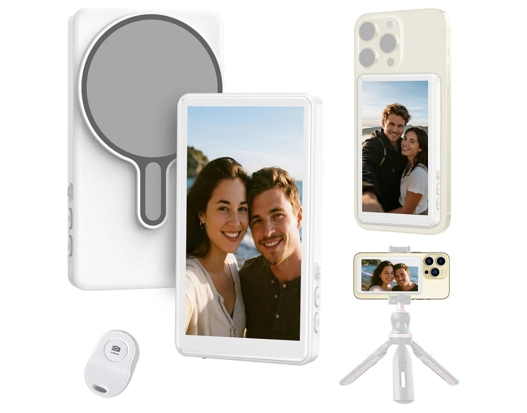 Ending On: 08/03/2026 07:34 Preview Time: 07:02 PMSelfie Monitor Screen for iPhone/Android,Magnetic Phone Vlog Selfie Screen with 1800mAh Battery&Bluetooth Remote,Wireless Back Camera Monitor for Live Streaming/TikTok(White)