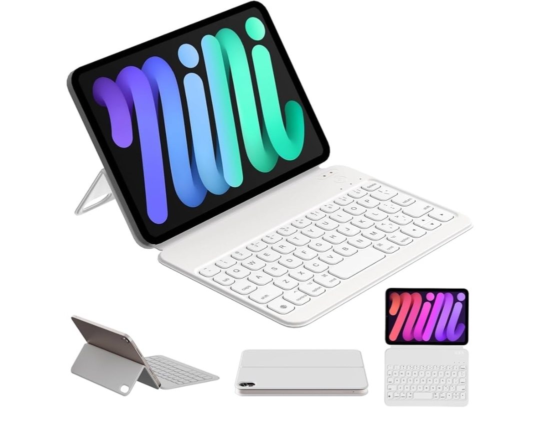 Ending On: 08/03/2026 07:35 Preview Time: 07:51 PMHOU Keyboard Case for iPad mini 7th (A17 Pro, 2024) & 6th (2021) 8.3-inch, Ultra Slim Folio Type of Keyboard, Power Display, Magnetic Protective Cover Support iPad mini 6/7