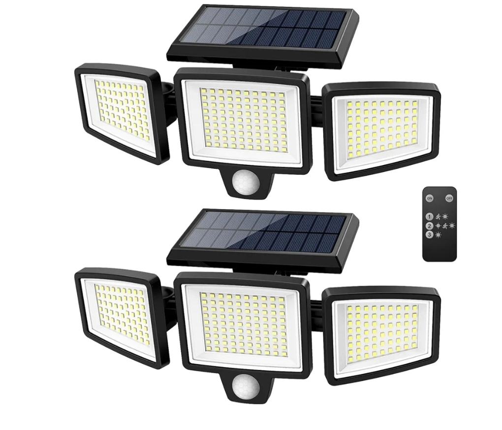 Ending On: 08/03/2026 07:37 Preview Time: 08:24 PMTuffenough Solar Outdoor Lights 2500LM 210 LED Security Lights with Remote Control,3 Heads Motion Sensor Lights, IP65 Waterproof,270° Wide Angle Flood Wall Lights with 3 Modes(2 Packs)