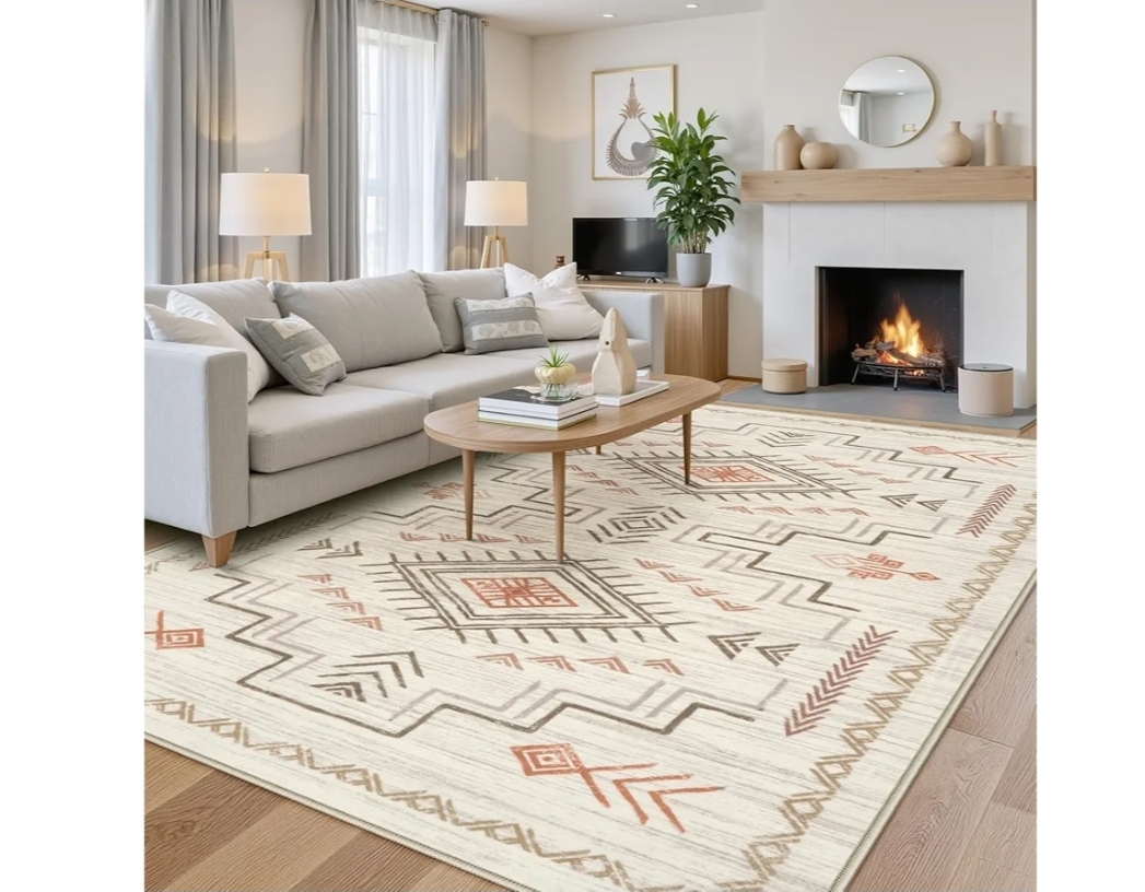 Ending On: 08/03/2026 07:40 Preview Time: 09:00 PMSTARUIA Washable 8x10 Area Rug for Living Room, Beige Western Aztec Tribal Moroccan Area Rug, Boys Neutral Rug for Bedroom, Soft Non-Slip Non-Shedding Large Carpet Under Dining Table Home Office