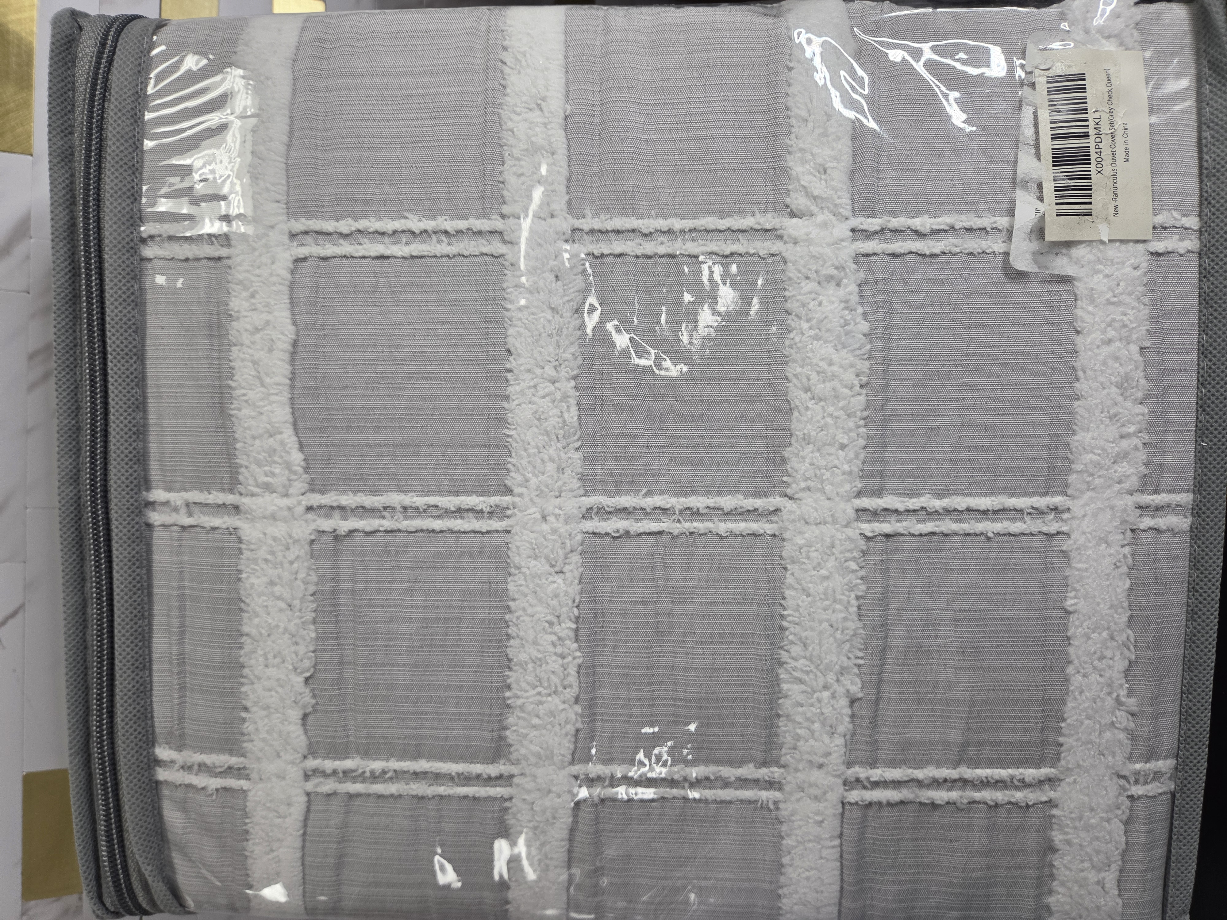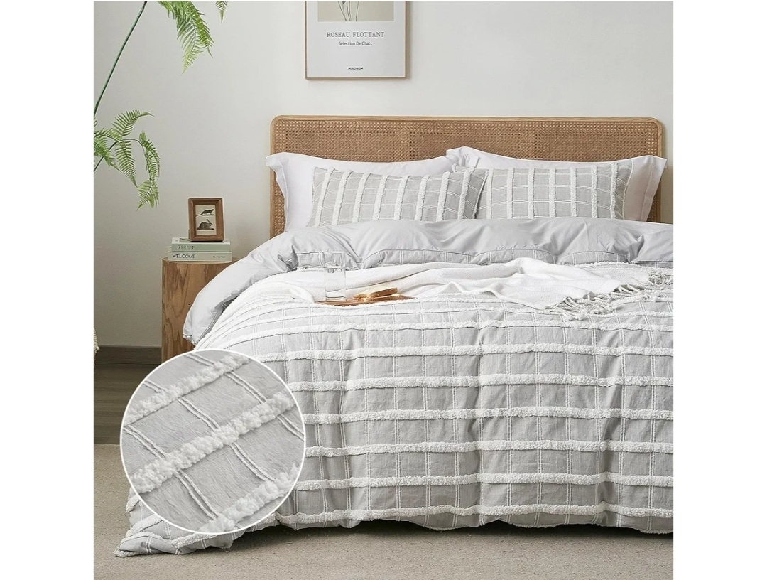 Ending On: 08/03/2026 07:41 Preview Time: 06:01 PMRanunculus Tufted Boho Queen Duvet Cover Set, Fluffy Washed Microfiber Stripe Duvet Cover Queen Size with Button Closure & 2 Pillow Shams for All Seasons, Comforter Not Included (Grey Check, 90"x90")