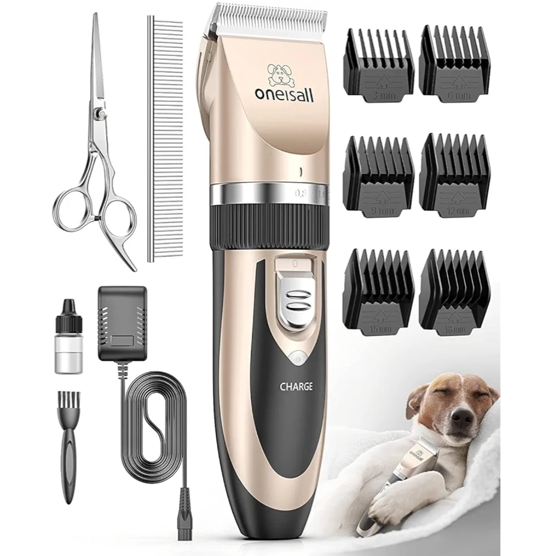 Ending On: 08/03/2026 07:41 Preview Time: 06:06 PMoneisall Dog Clipper Low Noise, Dog Grooming Kit with Rechargeable, Pet Shaver Cordless Electric Quiet Hair Clipper Set for Dogs Cats Pets(Gold)