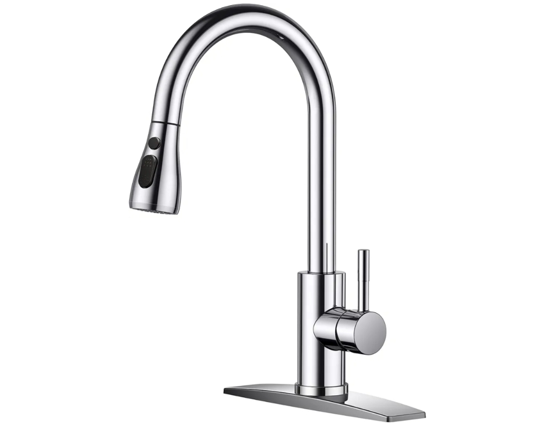 Ending On: 08/03/2026 07:41 Preview Time: 06:13 PMFORIOUS Kitchen Faucets with Pull Down Sprayer, Chrome, High Arc Single Handle Classic Stainless Steel Sink Faucet Pull Out for Farmhouse Camper Laundry Rv Bar