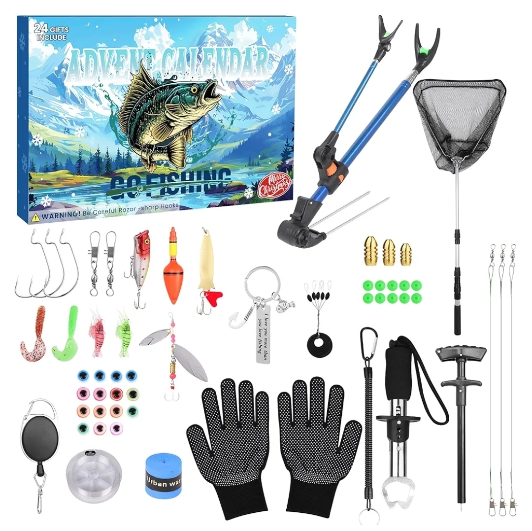 Ending On: 08/03/2026 07:44 Preview Time: 07:13 PMFishing Advent Calendar 2025 for Men - 24-Day Countdown Calendar with Telescopic Landing Net, Fish Gripper & Rod Holder for Father, Husband, Boyfriend