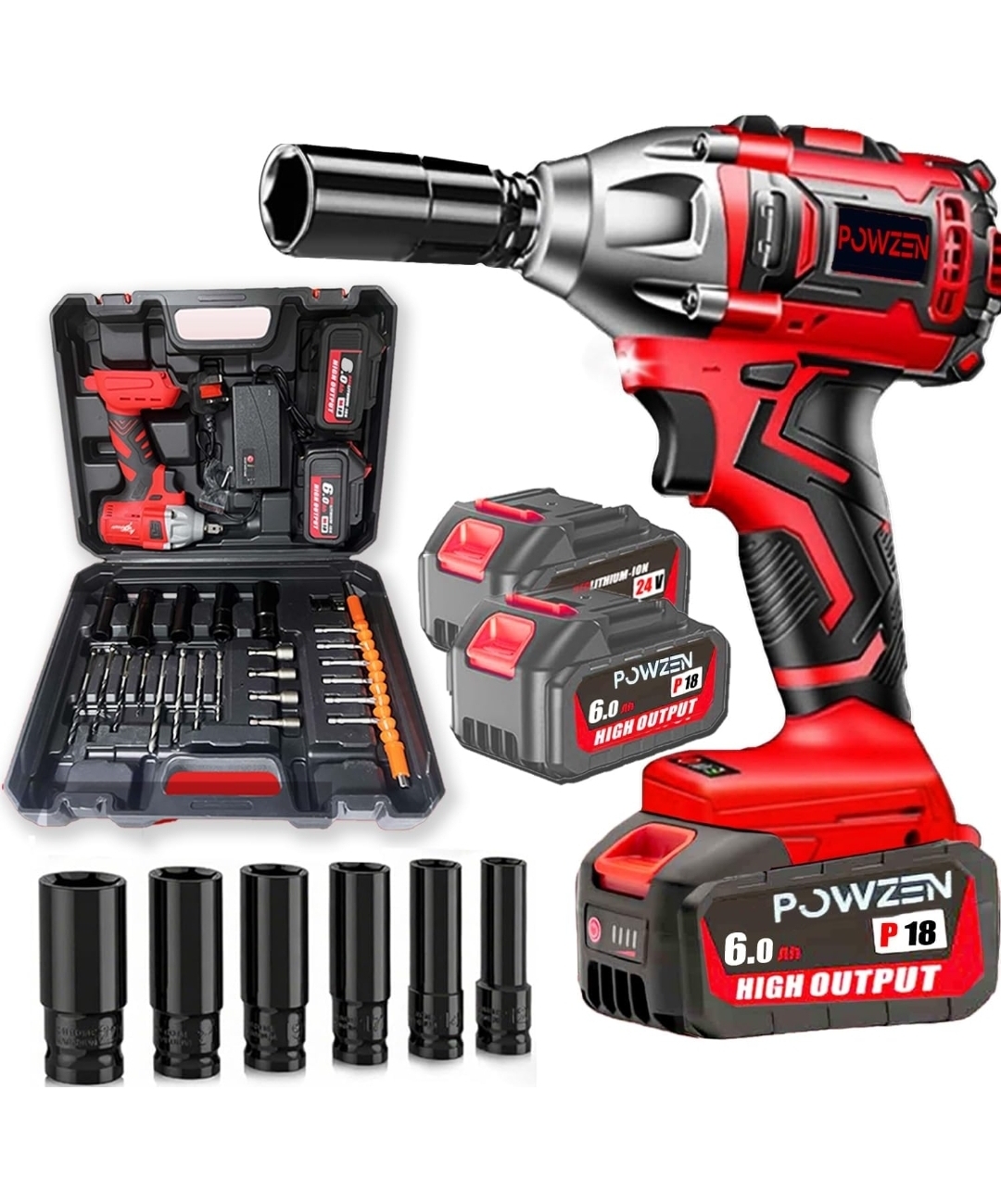 Ending On: 08/03/2026 07:52 Preview Time: 08:05 PM1/2" Cordless Impact Wrench 800N.m Electric Impact Gun, w/2pcs 18V 2x6.0AH M18 Rechargable Battery, Fast Charger,Impact Driver Kit (0-8800 rpm), Socket for drill,Screwdriver,lug nuts