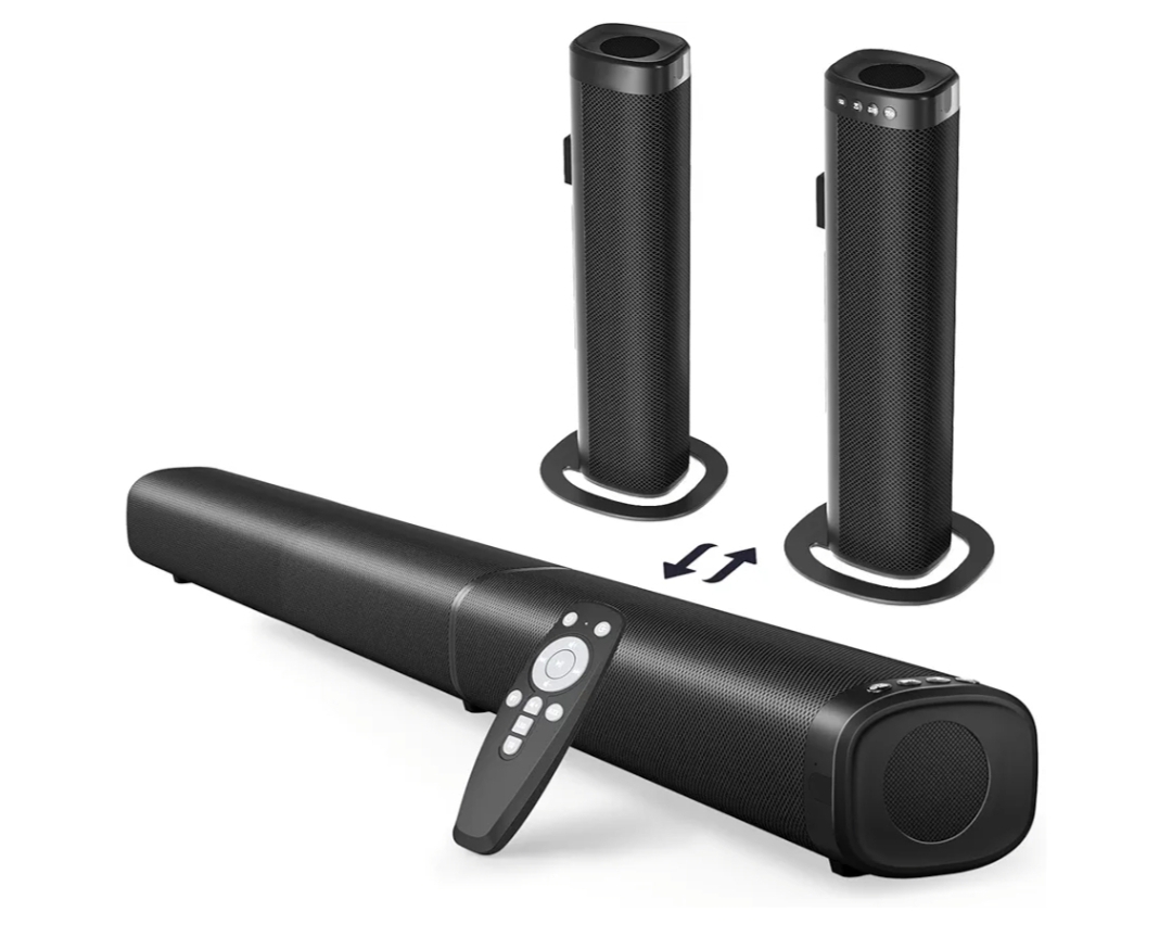 Ending On: 08/03/2026 07:47 Preview Time: 08:16 PMPuriom Sound Bar for Smart TV, 100W Sound Bar with Bluetooth 5.3/ARC/Opt/AUX Connect, 2-in-1 Detachable Home Soundbar, Home Theater Speaker & Bass Effect, for TV/PC/Projectors